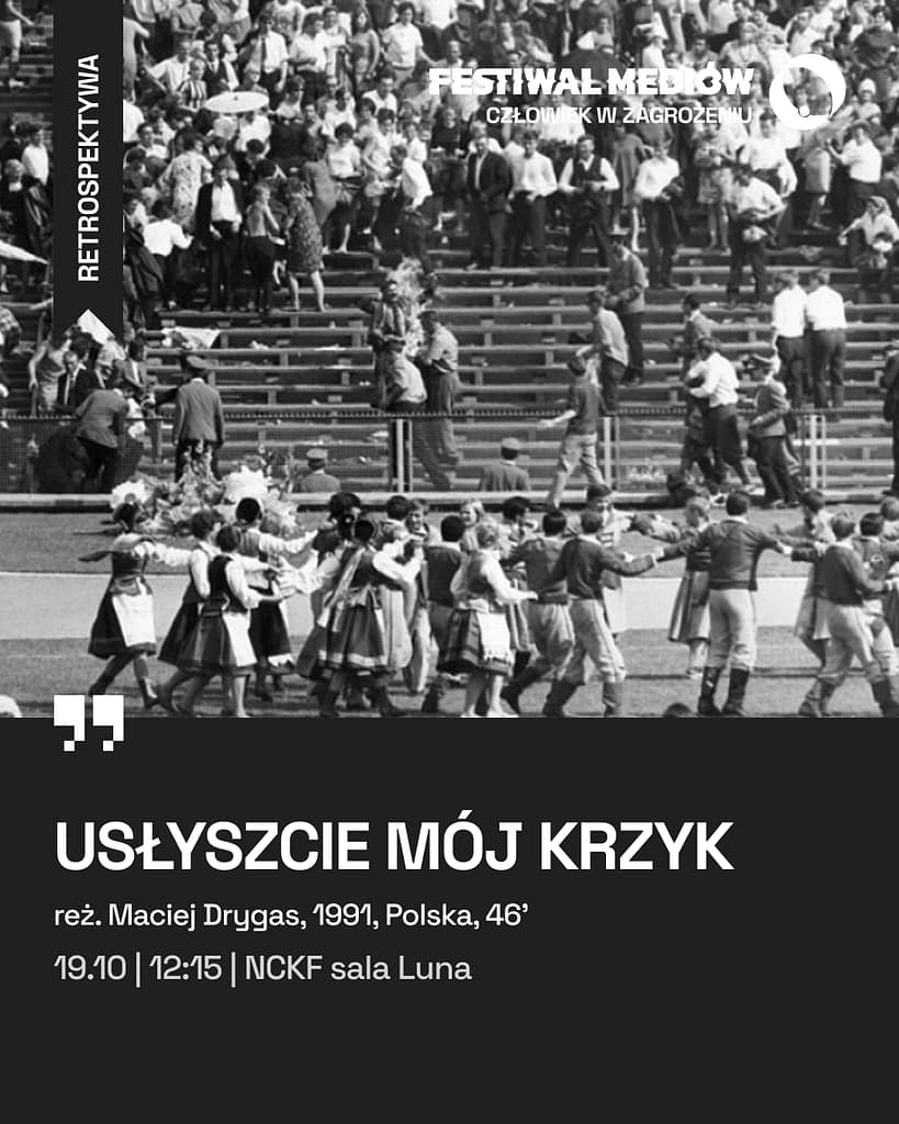 (Polska, 1991) Reżyseria: Maciej Drygas. Zdjęcia: Stanisław Śliskowski. Montaż: Dorota Wardęszkiewicz. Produkcja: Studio Filmowe Logos, Zespół Filmowy Zodiak. Czas: 46’8 września 1968 r. podczas dożynek na Stadionie X-lecia na znak protestu „przeciw tyranii kłamstwa, ogarniającego świat”, podpalił się 60-letni Ryszard Siwiec z Przemyśla. Ofiara jego nie została zauważona przez publiczność na trybunach. W Archiwum WFD zachował się siedmiosekundowy skrawek taśmy, na którym operator utrwalił tragiczne wydarzenie.