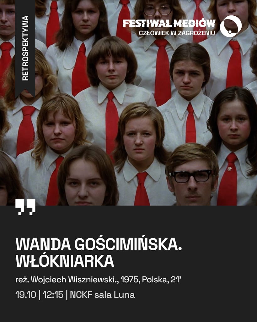 (Polska, 1975) Reżyseria: Wojciech Wiszniewski. Zdjęcia: Zbigniew Rybczyński. Montaż: Dorota Wardęszkiewicz. Produkcja: Wytwórnia Filmów Oświatowych. Czas: 21’Portret włókniarki z Łodzi, przodownicy pracy. Opowiadając o indywidualnym przypadku film w gruncie rzeczy mówi o idei, o relacjach jednostka społeczeństwo, o uwikłaniu w historię, o dylematach moralnych związanych z podporządkowaniem życia doktrynie.