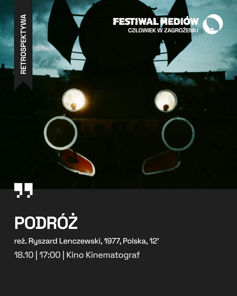 (Polska, 1977) Reżyseria: Ryszard Lenczewski. Zdjęcia: Ryszard Lenczewski, Krzysztof Ptak. Montaż: Dorota Wardęszkiewicz. Produkcja: Wytwórnia Filmów Oświatowych. Czas: 12’Poetycka impresja z podróży pociągiem towarowym z południa Polski na Wybrzeże. Etapy podróży stają się metaforą codzienności.