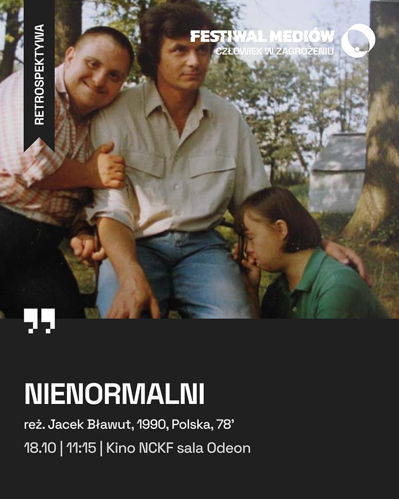 Skolimów, Dom Aktora. Trzy budynki otoczone pięknym ogrodem, w ogrodzie ekipa filmowa. Od razu widać, że nie jest to zwykły plan. Reżyser Jacek Bławut siedzi na zabytkowym motocyklu i strzela z łuku. Jednak zamiast strzały ma różę. Po parku spaceruje olbrzymi pudel… Już prawie 20 lat upłynęło od realizacji filmu Jeszcze nie wieczór – niezwykłego fabularnego debiutu Jacka Bławuta, w którym wystąpili nestorzy sztuki aktorskiej. Ten obraz był esencją podejścia Bławuta do kina – pełnego empatii, poszukiwania piękna w każdym człowieku, szacunku dla bohaterów, zainteresowanego ludźmi, którzy albo największą popularność mają za sobą, albo nigdy jej nie doświadczyli. KIedy Bławut myślał o kręceniu kontynuacji wybitnych Nienormalnych mówił: – Chodzi mi o dotarcie do szczerości, autentyzmu i piękna, jakie ludzie upośledzeni mają w sobie. O przedarcie się przez pierwsze wrażenie, które wprowadza nas w stan lęku. Boimy się nieznanego, a nie ma się czego bać. Trochę się baliśmy, nie mając pomysłu na to jak niebanalnie uhonorować Jacka – filmowca i Jacka – człowieka, na festiwalu przypadającym w roku jego, w co naprawdę trudno uwierzyć, 75 urodzin. Na szczęście w sukurs przyszedł dr Michał Dondzik, który wpadł na pomysł, by przypomnieć te filmy Bławuta, które były jego debiutami w różnych formach filmowej aktywności. Zobaczą więc Państwo m.in. pierwszy dziecięcy występ aktorski, pierwsze dokonania operatorskie, pierwszy nagrodzony film na „Człowieku w Zagrożeniu”. Zapraszamy na projekcje oraz na spotkanie z bohaterem retrospektywy, a zarazem przewodniczącym jury tegorocznego Konkursu Filmów Dokumentalnych.